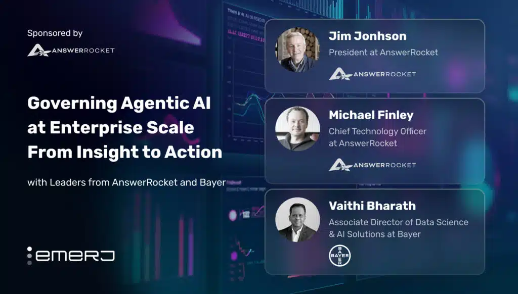 To examine these challenges, Emerj’s ‘AI in Business’ podcast recently hosted a series of conversations with Jim Johnson of AnswerRocket, Michael Finley of AnswerRocket, and Vaithi Bharath of Bayer. Their discussions explore why traditional analytics models break down under complexity, how agentic systems must be engineered as enterprise software, and what it takes to deploy AI responsibly in regulated environments.