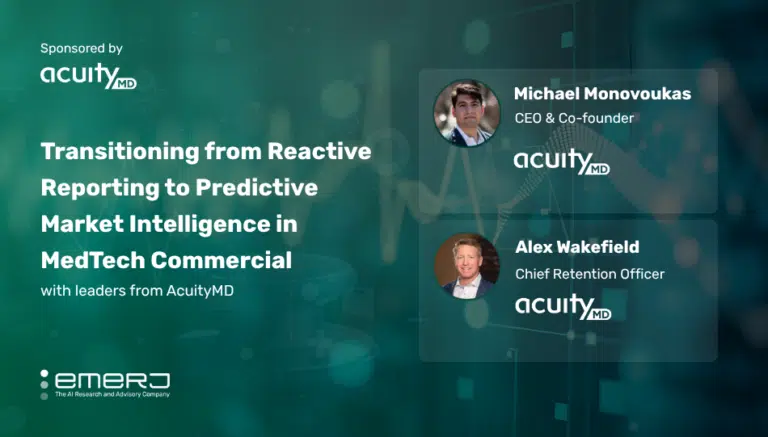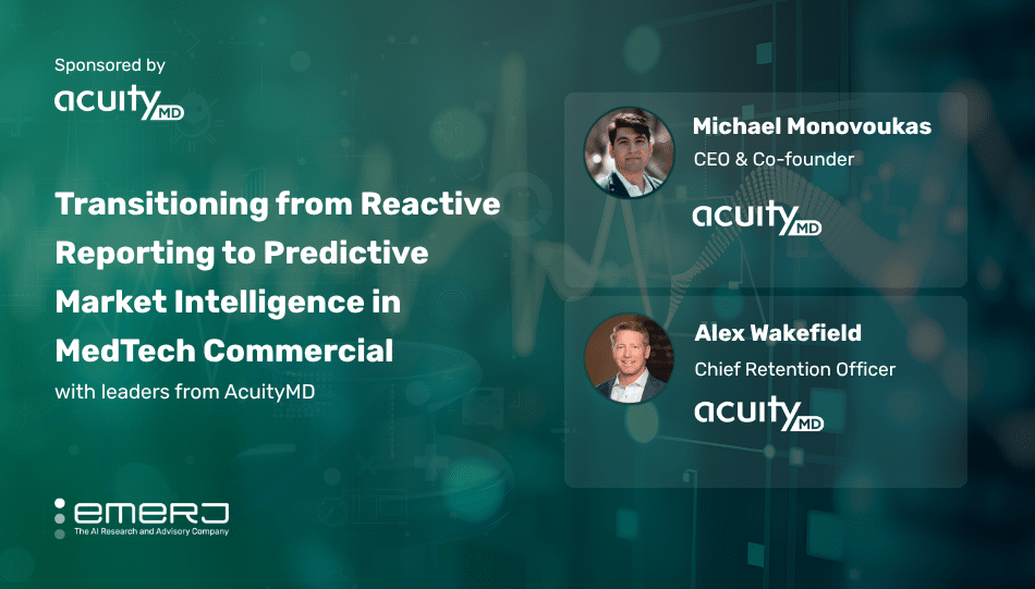 Emerj recently hosted a conversation with AcuityMD leadership on the ‘AI in Business’ podcast, including Chief Executive Officer Michael Monovoukas and Chief Revenue Officer Alex Wakefield, to analyze how AI-driven intelligence is being used to dismantle sales inertia in the Medtech space.